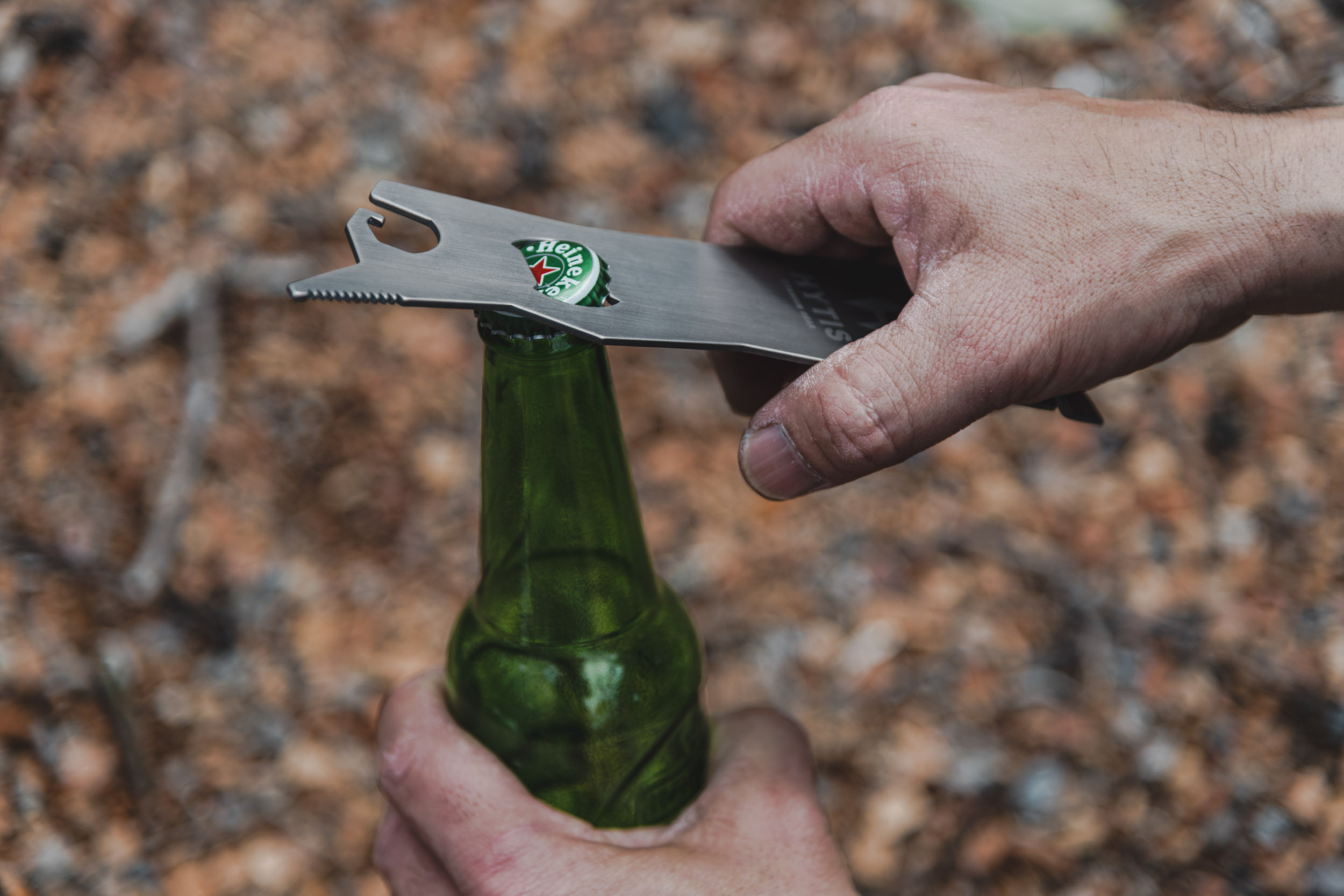 ハンドルの栓抜き部で栓を抜く場合、ハンドルのギザギザ部が上下して負傷しないよう注意してください。